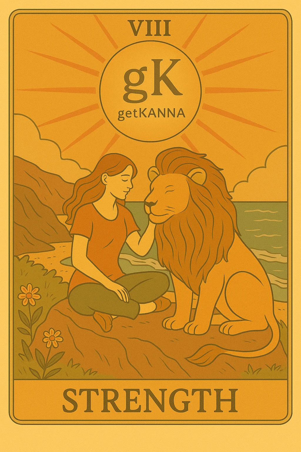 Strength represents inner power, compassion, and the ability to overcome challenges with patience and gentle determination.